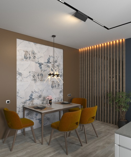 Кварц-виниловые панели с декором под бетон, мрамор и даже ткань создадут атмосферный акцент в интерьере. Монтируются на клей — никаких видимых швов и сложных каркасов!