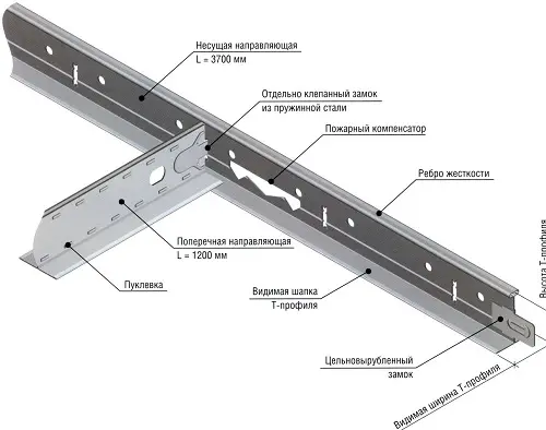 Подвесная система Т-24 «Эконом» представляет собой экономичный вариант, подходящий для установки распространенных типов кассетных потолков из минеральных волокон и алюминия.