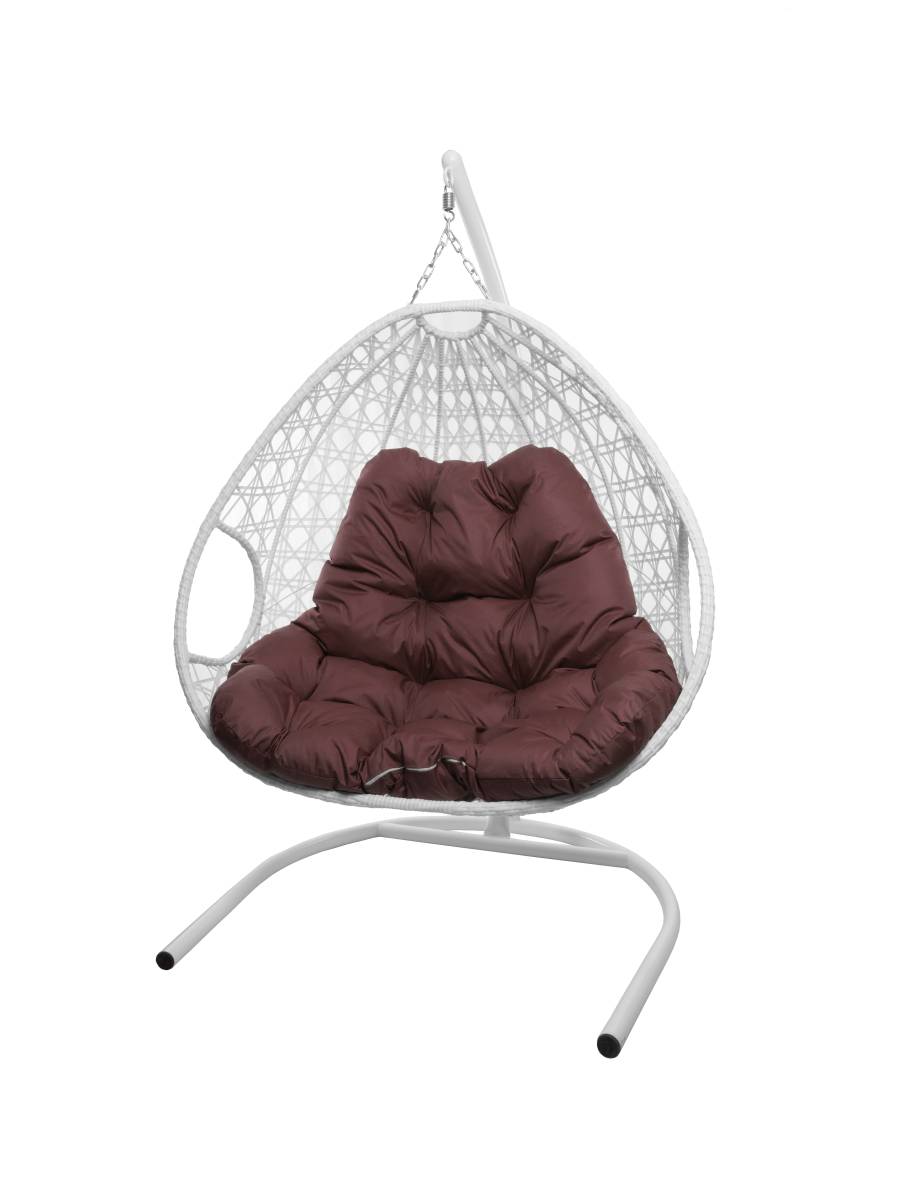 Подвесное кресло ДЛЯ ДВОИХ ЛЮКС с ротангом белое, бордовая подушка: цены, фото - купить в интернет-магазине Diopt.ru