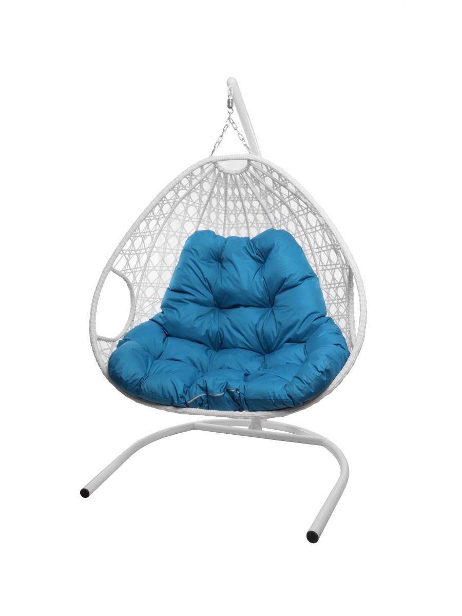 Подвесное кресло ДЛЯ ДВОИХ ЛЮКС с ротангом белое, голубая подушка: цены, фото - купить в интернет-магазине Diopt.ru