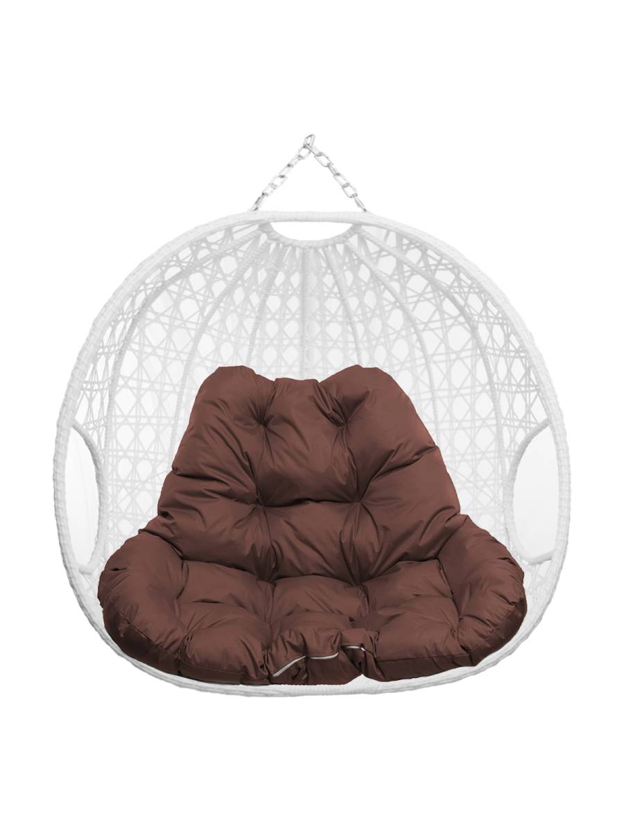 Подвесное кресло ДЛЯ ДВОИХ ЛЮКС, с ротангом, белый, коричневая подушка (БЕЗ СТОЙКИ) - купить в интернет-магазине Diopt.ru