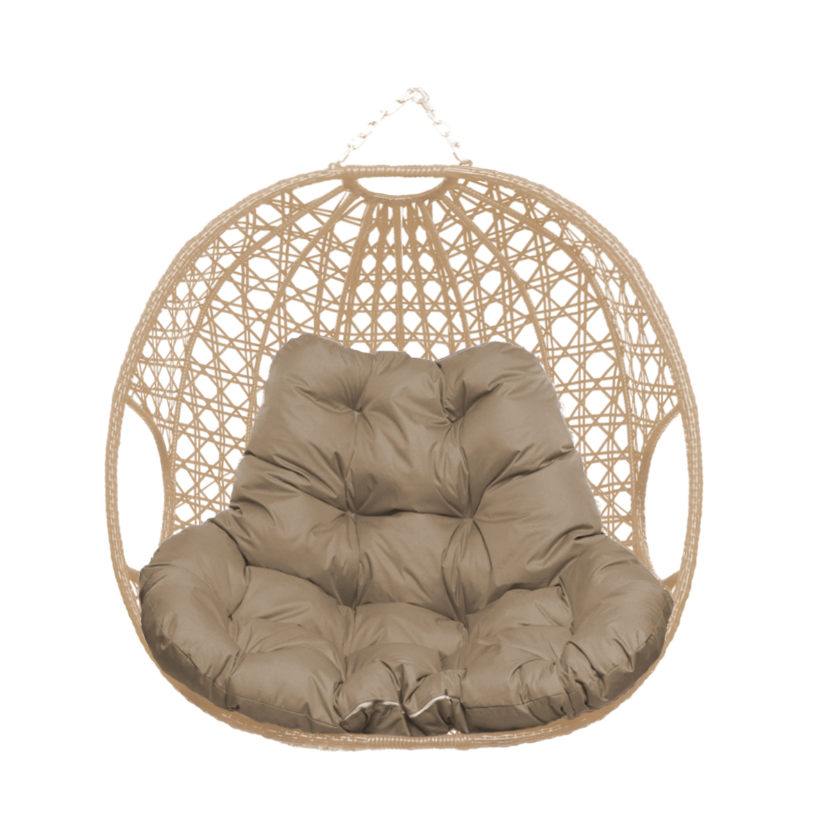 Подвесное кресло ДЛЯ ДВОИХ ЛЮКС, с ротангом, бежевое, бежевая подушка (БЕЗ СТОЙКИ) - купить в интернет-магазине Diopt.ru
