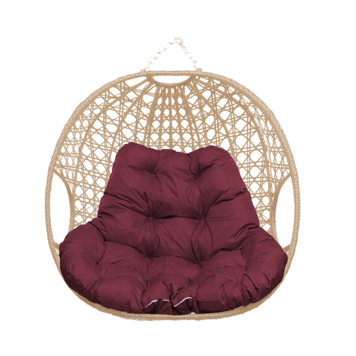 Подвесное кресло ДЛЯ ДВОИХ ЛЮКС, с ротангом, бежевое, бордовая подушка (БЕЗ СТОЙКИ) - купить в интернет-магазине Diopt.ru