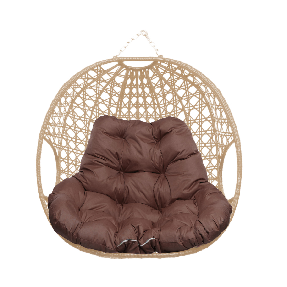Подвесное кресло ДЛЯ ДВОИХ ЛЮКС, с ротангом, бежевое, коричневая подушка (БЕЗ СТОЙКИ) - купить в интернет-магазине Diopt.ru