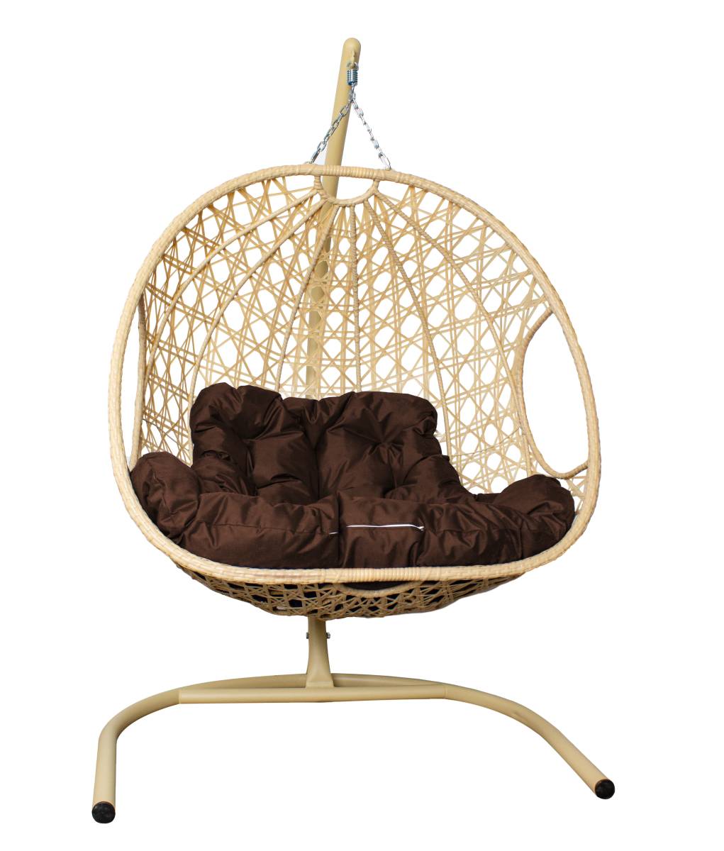 Подвесное кресло ДЛЯ ДВОИХ ЛЮКС с ротангом бежевое, коричневая подушка - купить в интернет-магазине Diopt.ru