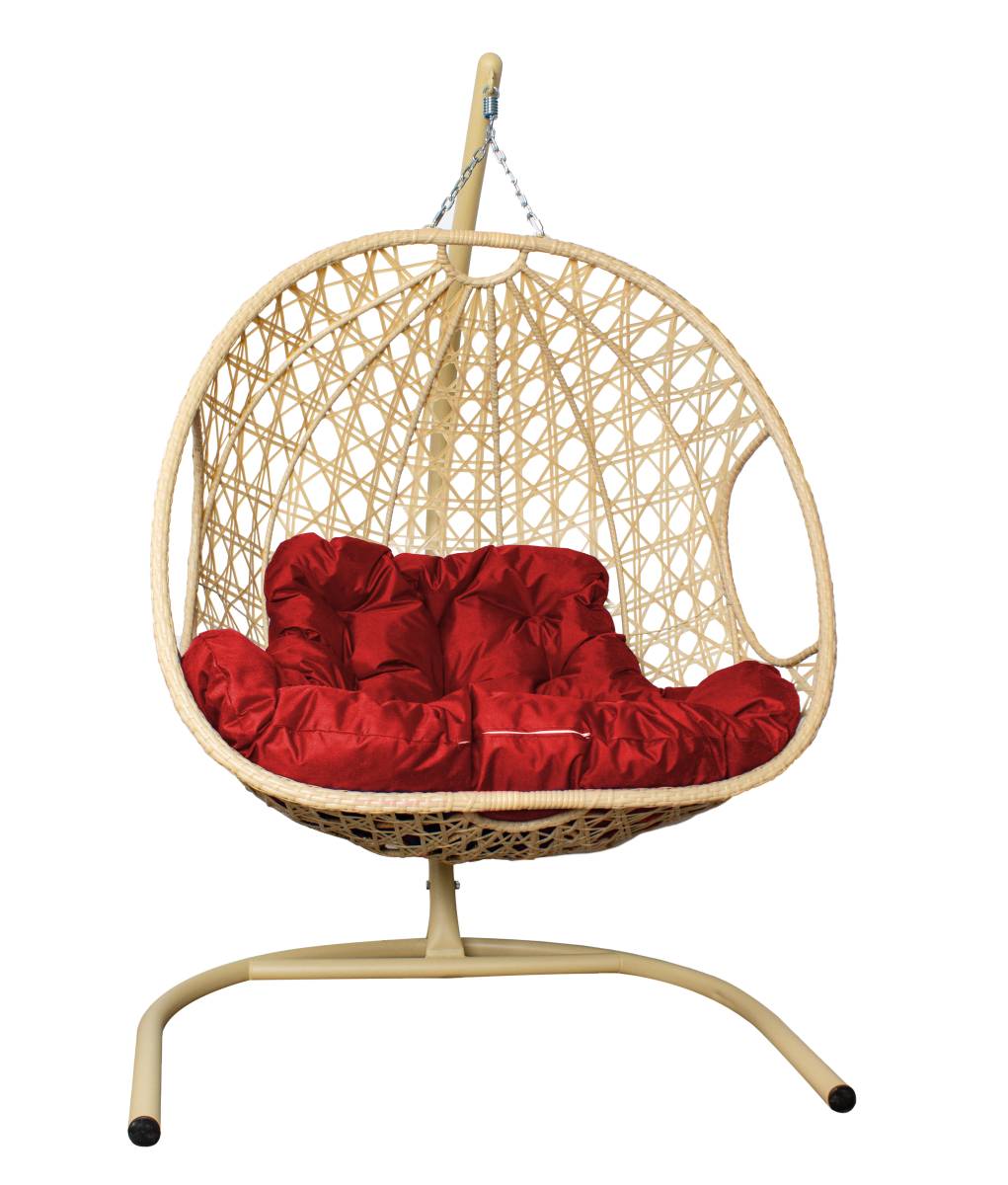 Подвесное кресло ДЛЯ ДВОИХ ЛЮКС с ротангом бежевое, красная подушка - купить в интернет-магазине Diopt.ru