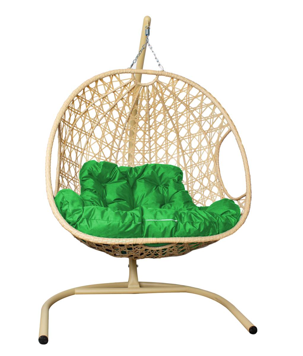 Подвесное кресло ДЛЯ ДВОИХ ЛЮКС с ротангом бежевое, зелёная подушка - купить в интернет-магазине Diopt.ru