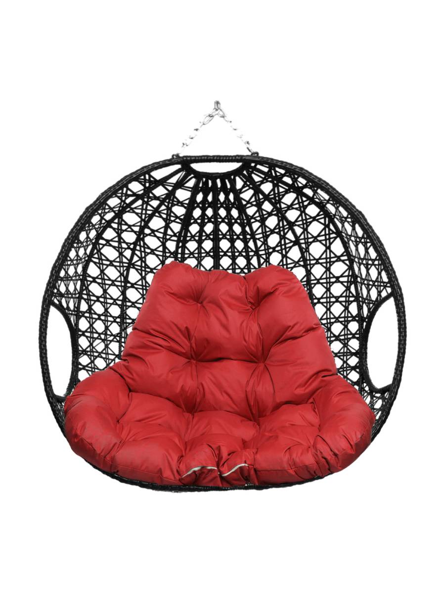 Подвесное кресло ДЛЯ ДВОИХ ЛЮКС, с ротангом, чёрный, красная подушка (БЕЗ СТОЙКИ) - купить в интернет-магазине Diopt.ru
