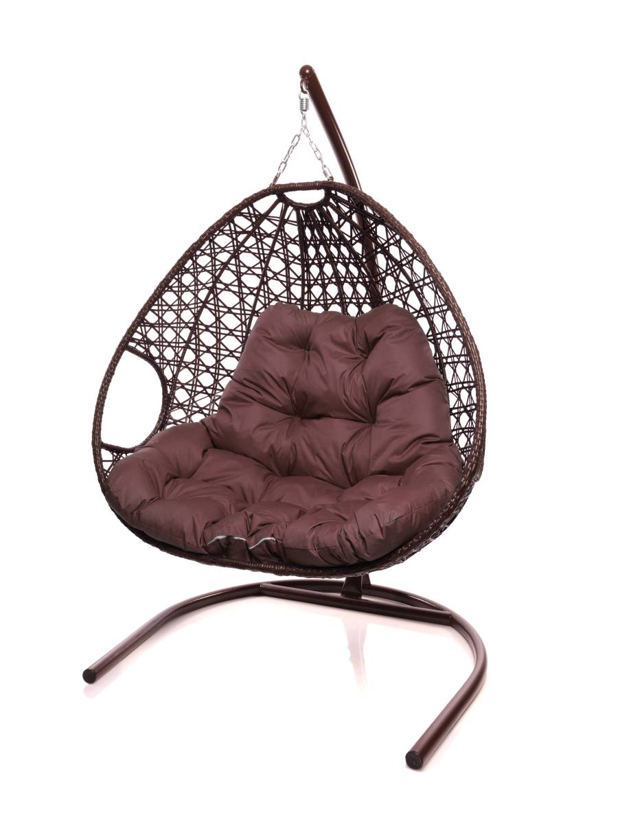 Подвесное кресло ДЛЯ ДВОИХ ЛЮКС с ротангом коричневое, бордовая подушка