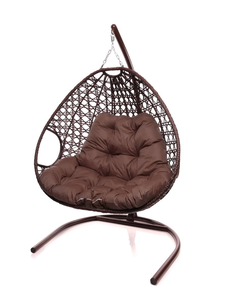 Подвесное кресло ДЛЯ ДВОИХ ЛЮКС с ротангом коричневое, коричневая подушка - купить в интернет-магазине Diopt.ru