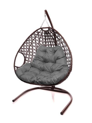 Подвесное кресло ДЛЯ ДВОИХ ЛЮКС с ротангом коричневое, серая подушка - купить в интернет-магазине Diopt.ru