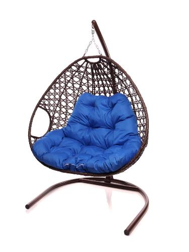 Подвесное кресло ДЛЯ ДВОИХ ЛЮКС с ротангом коричневое, синяя подушка - купить в интернет-магазине Diopt.ru