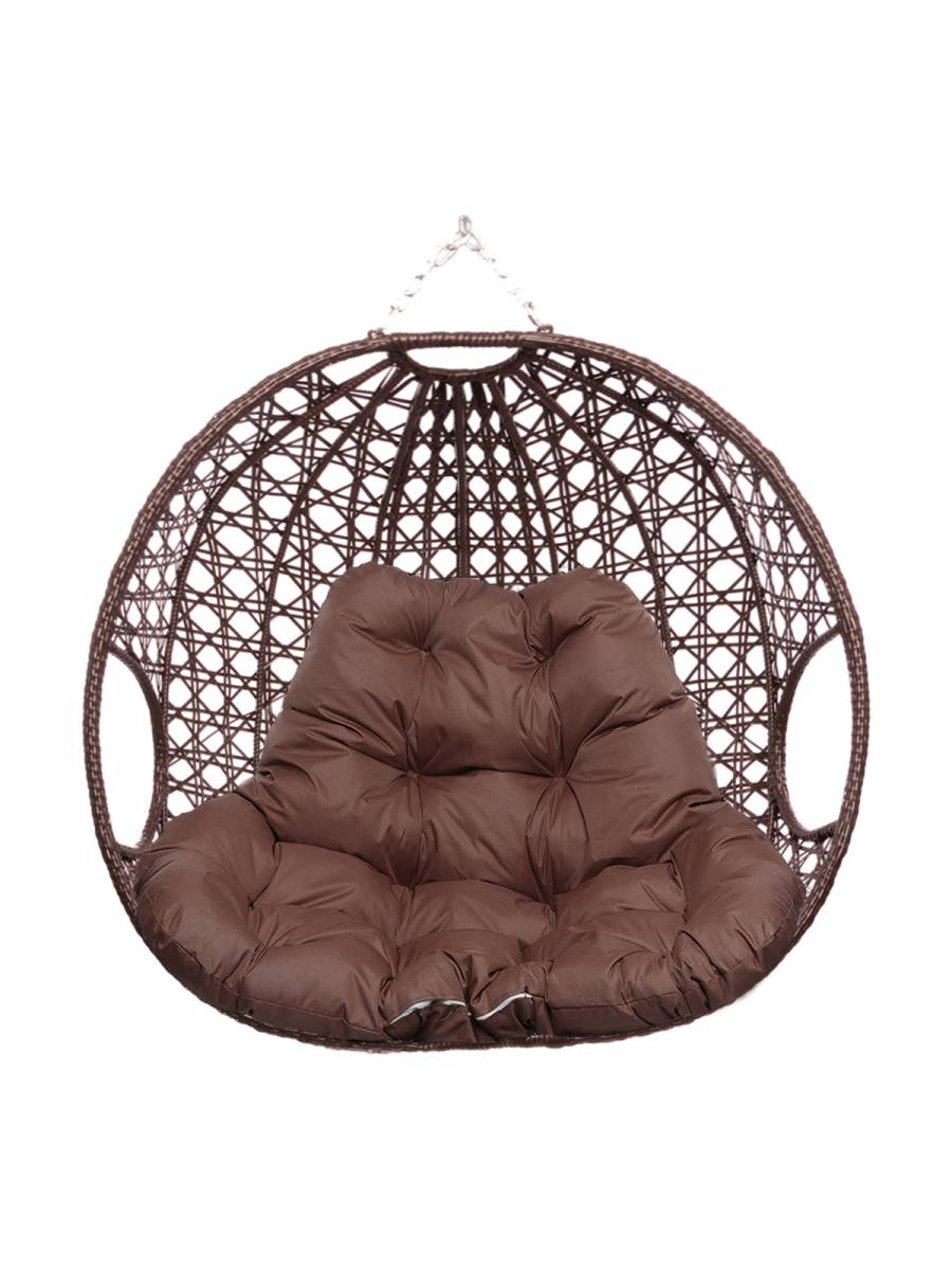 Подвесное кресло ДЛЯ ДВОИХ ЛЮКС, с ротангом, коричневый, коричневая подушка (БЕЗ СТОЙКИ) - купить в интернет-магазине Diopt.ru