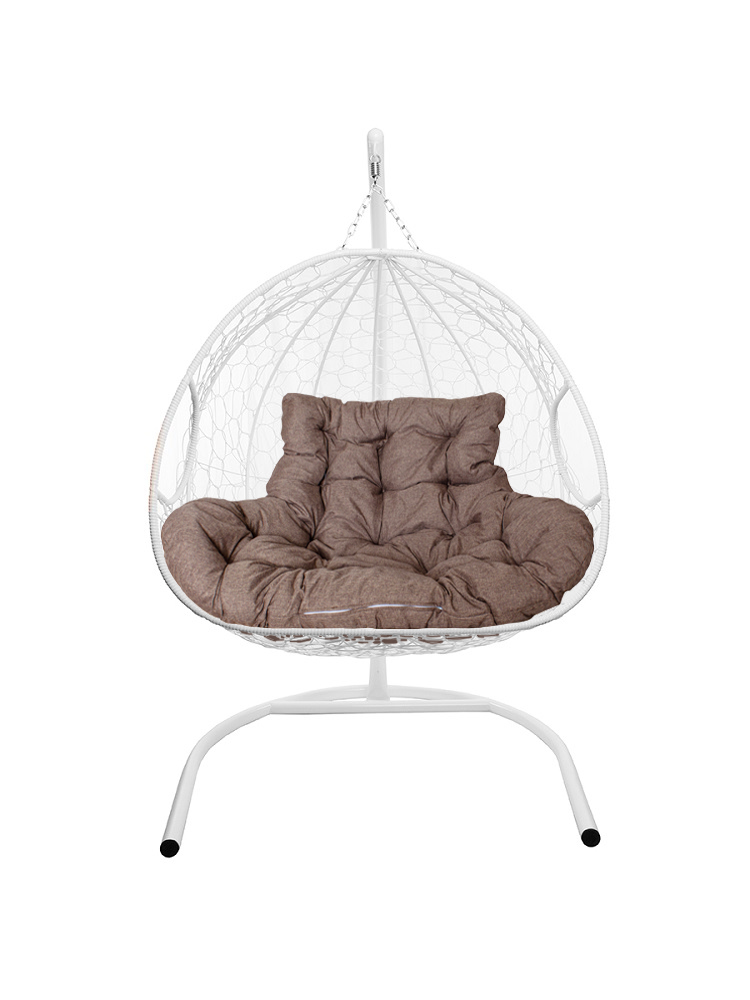 Подвесное кресло ДЛЯ ДВОИХ с ротангом белое, подушка Какао: цены, фото - купить в интернет-магазине Diopt.ru