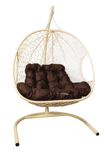Подвесное кресло ДЛЯ ДВОИХ с ротангом бежевое, коричневая подушка - купить в интернет-магазине Diopt.ru
