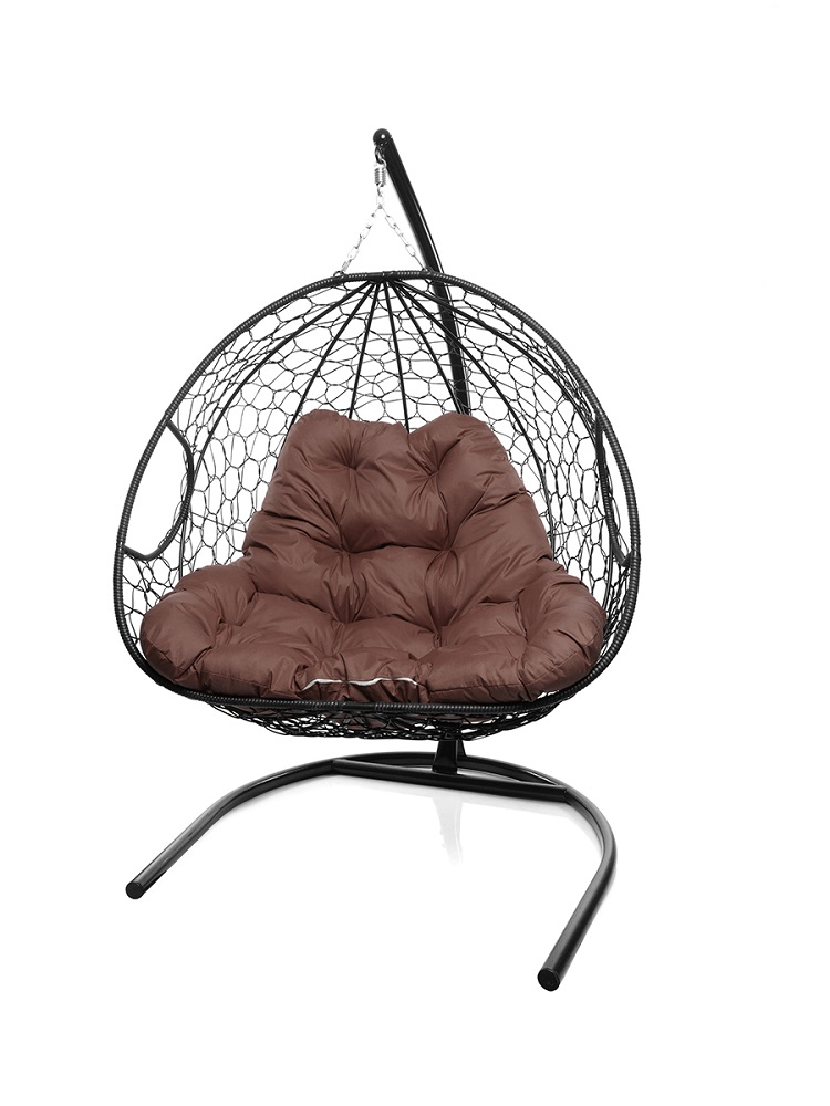 Подвесное кресло ДЛЯ ДВОИХ с ротангом чёрное, коричневая подушка - купить в интернет-магазине Diopt.ru