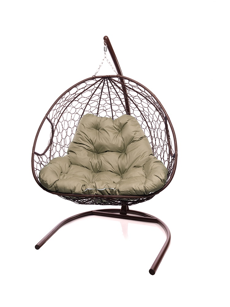 Подвесное кресло ДЛЯ ДВОИХ с ротангом коричневое, бежевая подушка: цены, фото - купить в интернет-магазине Diopt.ru