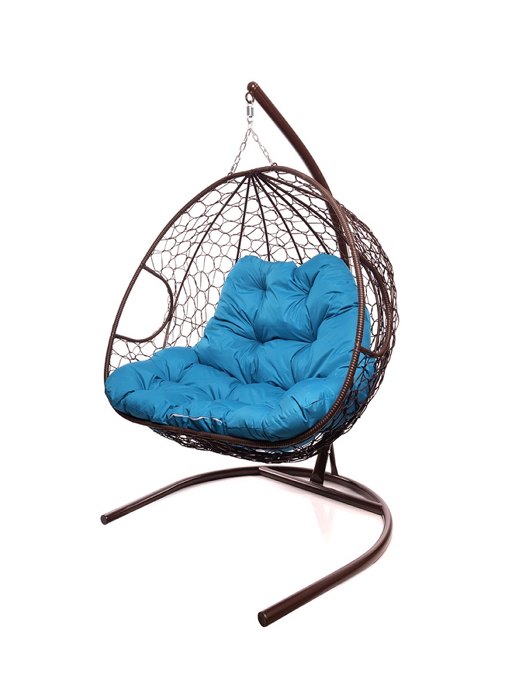 Подвесное кресло ДЛЯ ДВОИХ с ротангом коричневое, голубая подушка, шт - купить в интернет-магазине Diopt.ru
