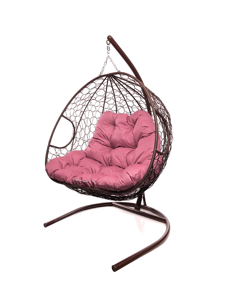 Подвесное кресло ДЛЯ ДВОИХ с ротангом коричневое, розовая подушка - купить в интернет-магазине Diopt.ru