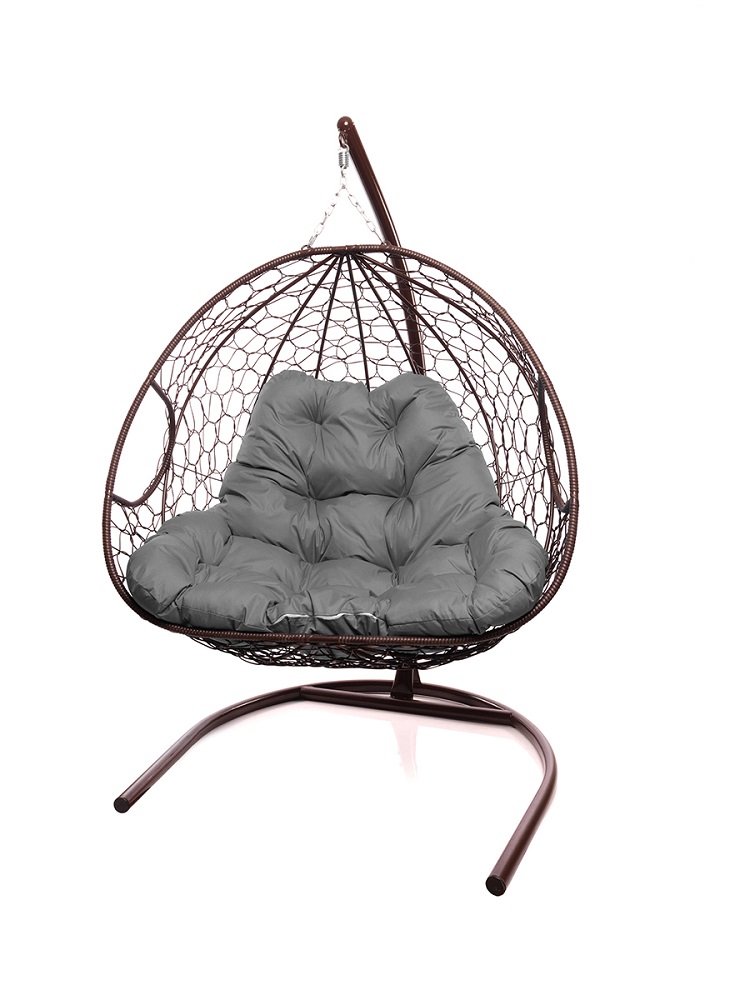 Подвесное кресло ДЛЯ ДВОИХ с ротангом коричневое, серая подушка - купить в интернет-магазине Diopt.ru