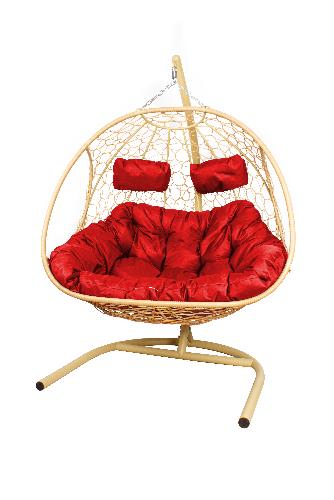 Подвесное кресло Добрыня с ротангом бежевое,красная подушка (Ткань оксфорд)