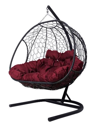 Подвесное кресло Добрыня с ротангом черное, бордовая подушка (Ткань оксфорд)
