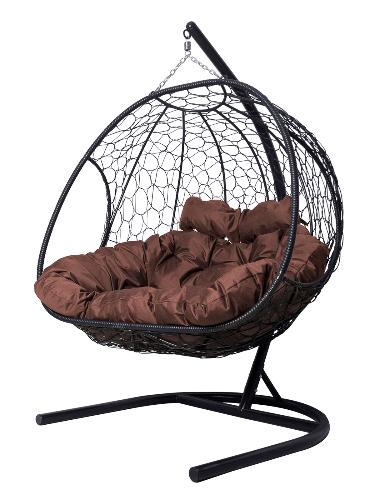 Подвесное кресло Добрыня с ротангом черное, коричневая подушка (Ткань оксфорд)