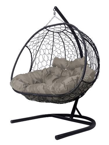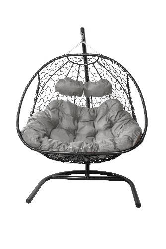 Подвесное кресло Добрыня с ротангом черное, серая подушка (Ткань оксфорд)