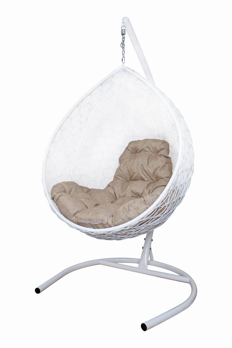 Подвесное кресло КАПЛЯ Home с ротангом белое, подушка Лен - купить в интернет-магазине Diopt.ru