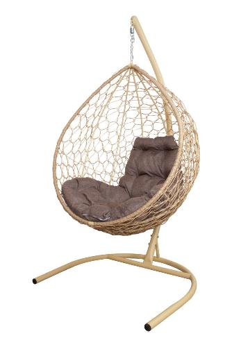 Подвесное кресло КАПЛЯ Home с ротангом бежевое, подушка Какао - купить в интернет-магазине Diopt.ru