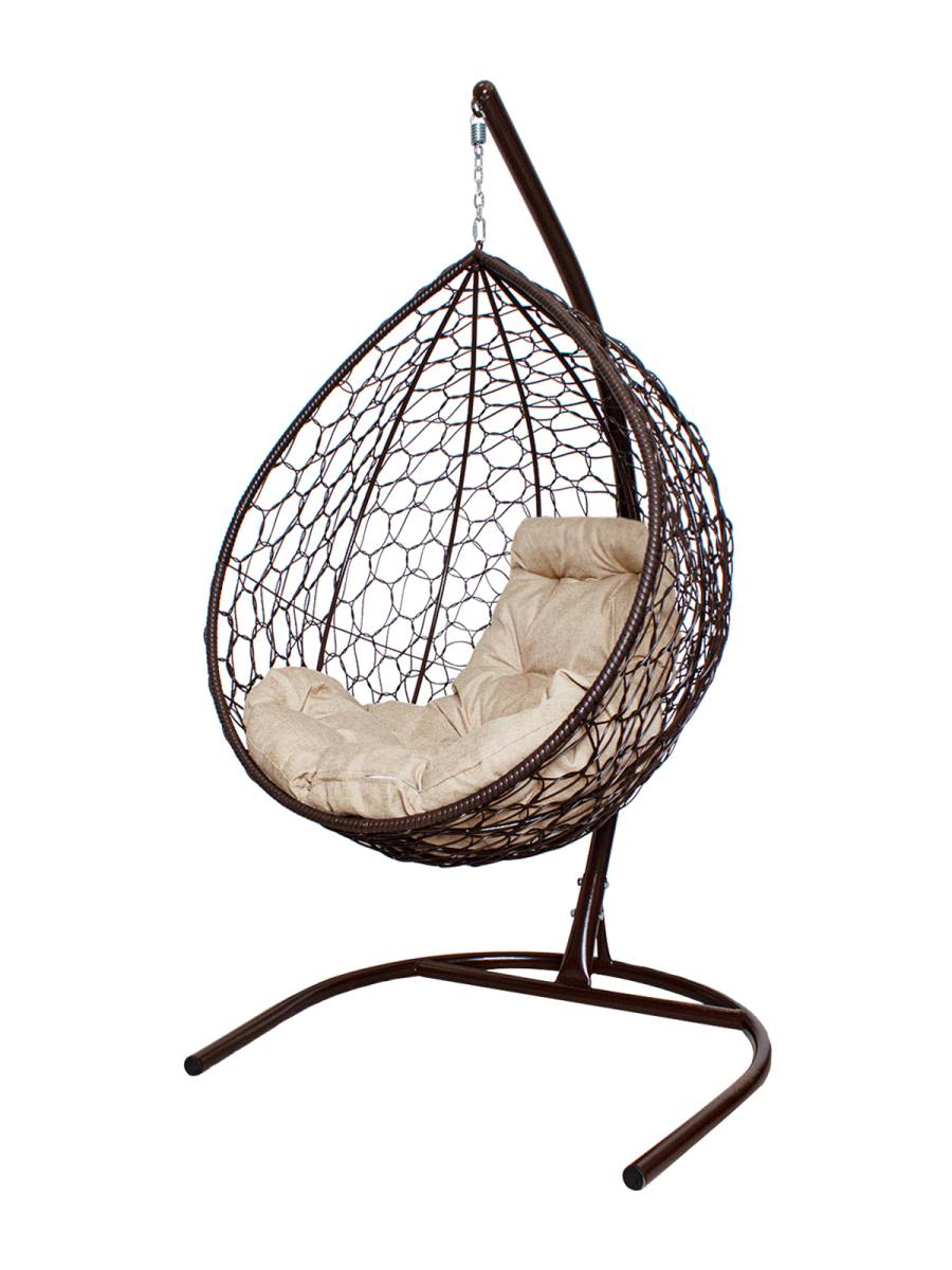 Подвесное кресло КАПЛЯ Home с ротангом коричневое, подушка Лен - купить в интернет-магазине Diopt.ru