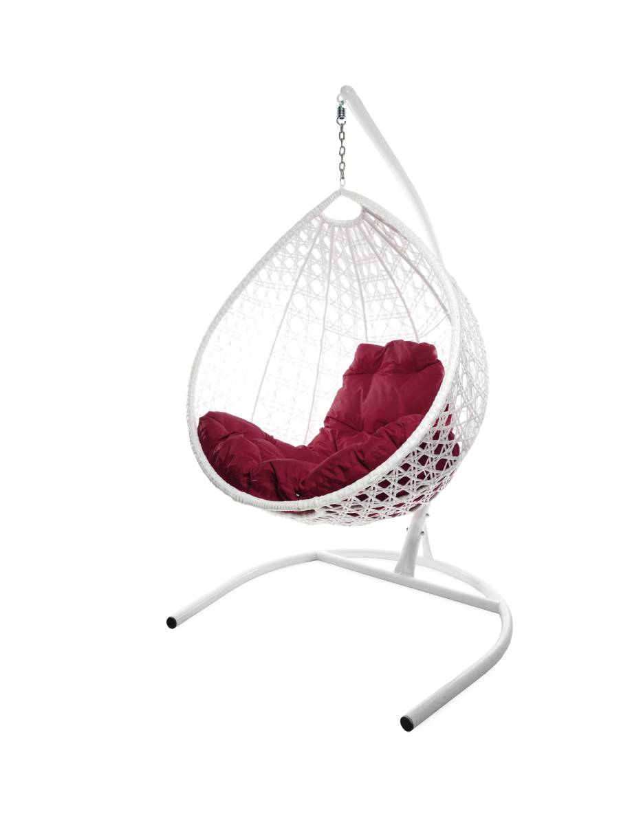 Подвесное кресло КАПЛЯ ЛЮКС с ротангом белое, бордовая подушка - купить в интернет-магазине Diopt.ru
