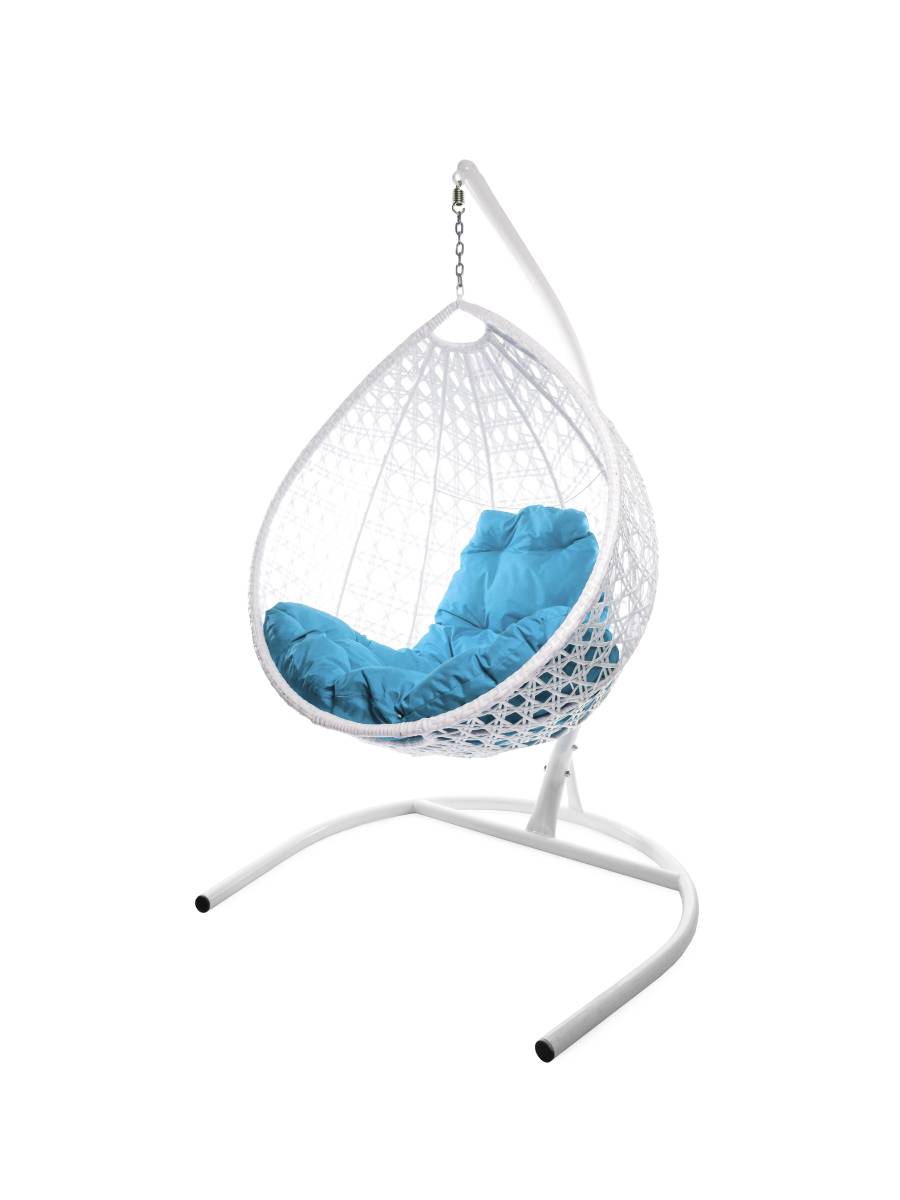 Подвесное кресло КАПЛЯ ЛЮКС с ротангом белое, голубая подушка - купить в интернет-магазине Diopt.ru