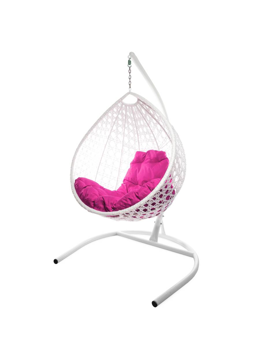 Подвесное кресло КАПЛЯ ЛЮКС с ротангом белое, розовая подушка - купить в интернет-магазине Diopt.ru