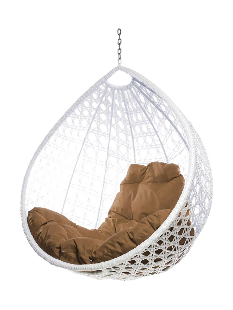 Подвесное кресло КАПЛЯ ЛЮКС с ротангом, белый, бежевая подушка (БЕЗ СТОЙКИ): цены, фото - купить в интернет-магазине Diopt.ru