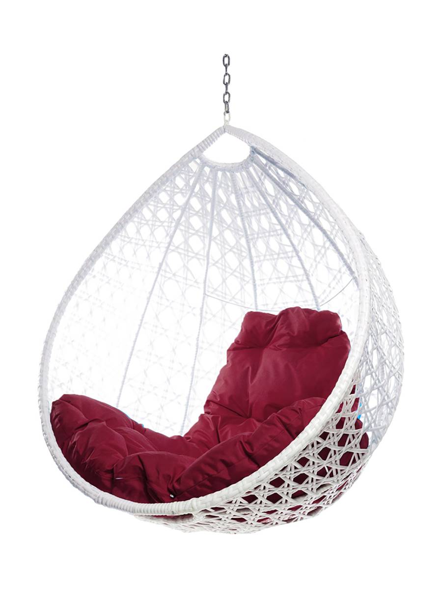 Подвесное кресло КАПЛЯ ЛЮКС с ротангом, белый, бордовая подушка (БЕЗ СТОЙКИ) - купить в интернет-магазине Diopt.ru