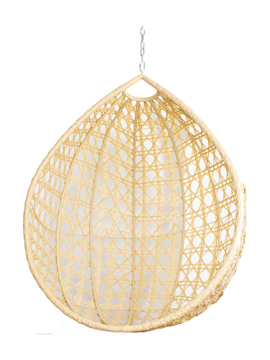 Подвесное кресло КАПЛЯ ЛЮКС с ротангом, бежевое (БЕЗ СТОЙКИ, БЕЗ ПОДУШКИ) - купить в интернет-магазине Diopt.ru