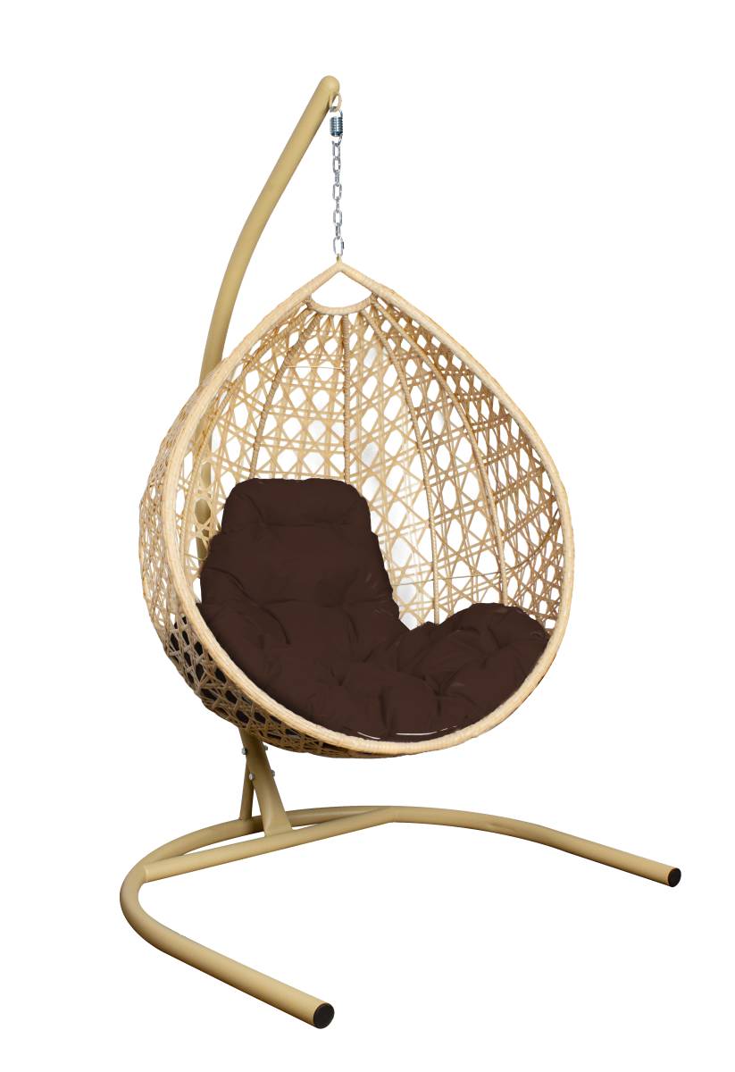 Подвесное кресло КАПЛЯ ЛЮКС с ротангом бежевое, коричневая подушка - купить в интернет-магазине Diopt.ru