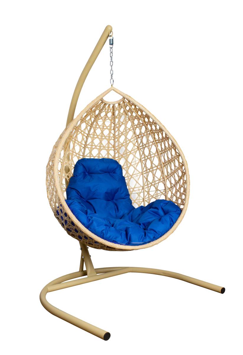 Подвесное кресло КАПЛЯ ЛЮКС с ротангом бежевое, синяя подушка - купить в интернет-магазине Diopt.ru