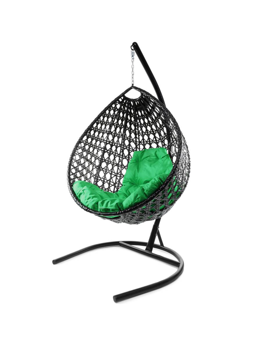 Подвесное кресло КАПЛЯ ЛЮКС с ротангом чёрное, зелёная подушка - купить в интернет-магазине Diopt.ru