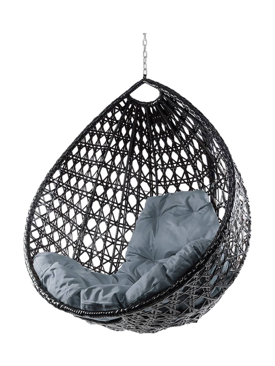 Подвесное кресло КАПЛЯ ЛЮКС с ротангом, чёрный, серая подушка (БЕЗ СТОЙКИ) - купить в интернет-магазине Diopt.ru