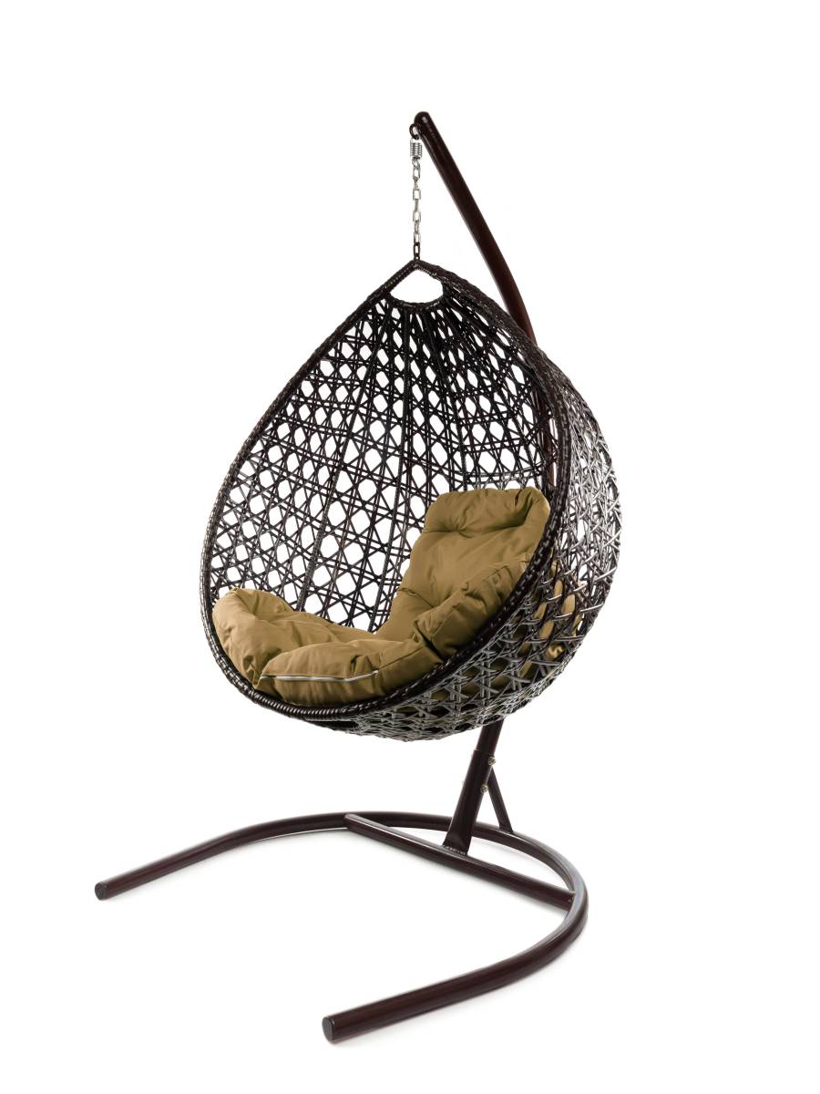 Подвесное кресло КАПЛЯ ЛЮКС с ротангом коричневое, бежевая подушка - купить в интернет-магазине Diopt.ru
