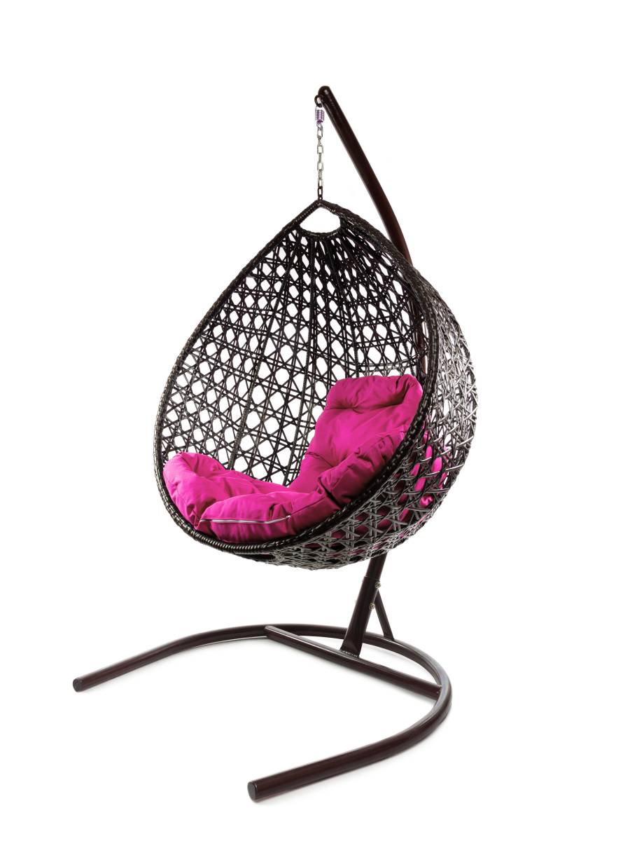 Подвесное кресло КАПЛЯ ЛЮКС с ротангом коричневое, розовая подушка - купить в интернет-магазине Diopt.ru