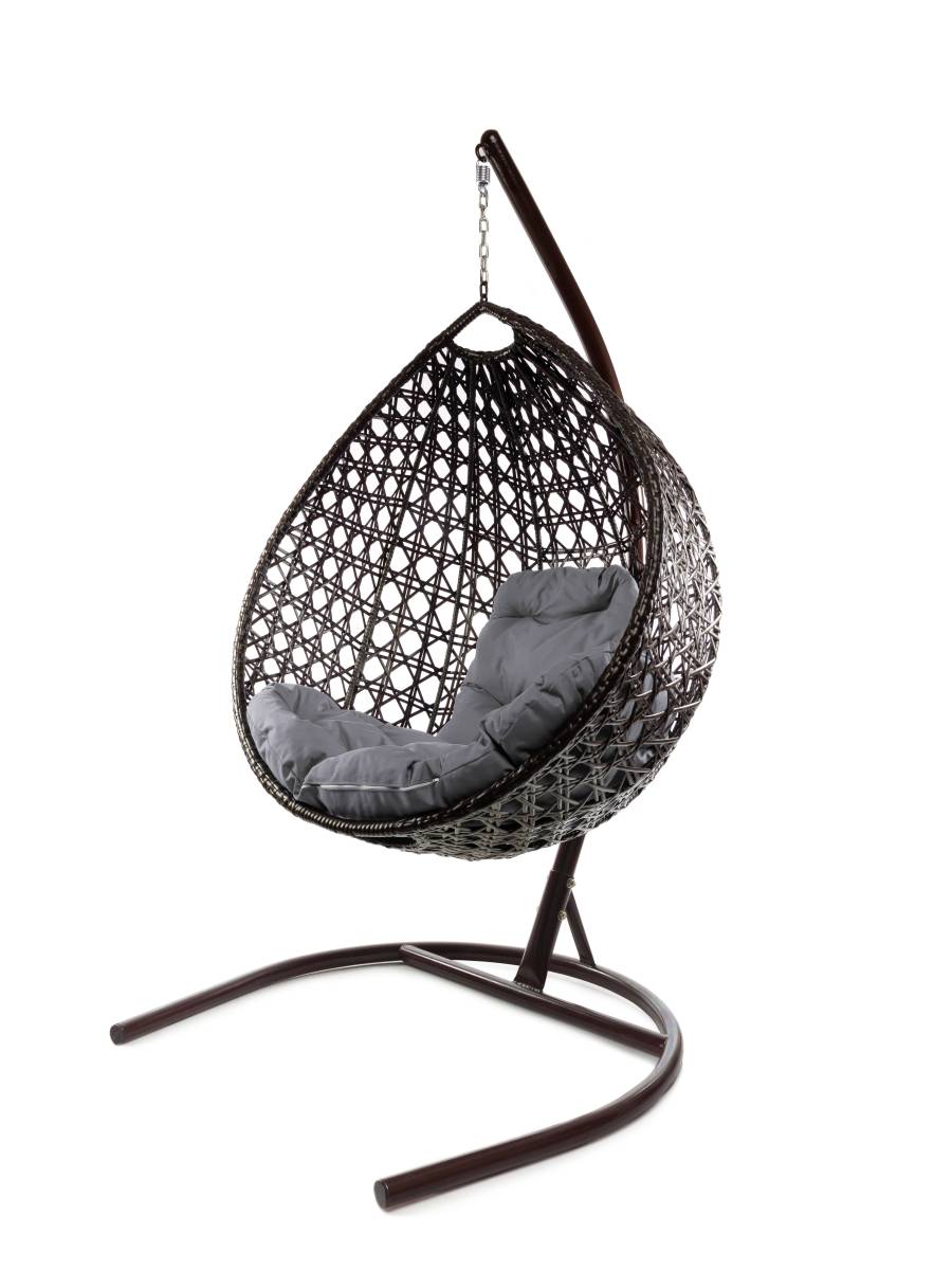 Подвесное кресло КАПЛЯ ЛЮКС с ротангом коричневое, серая подушка - купить в интернет-магазине Diopt.ru