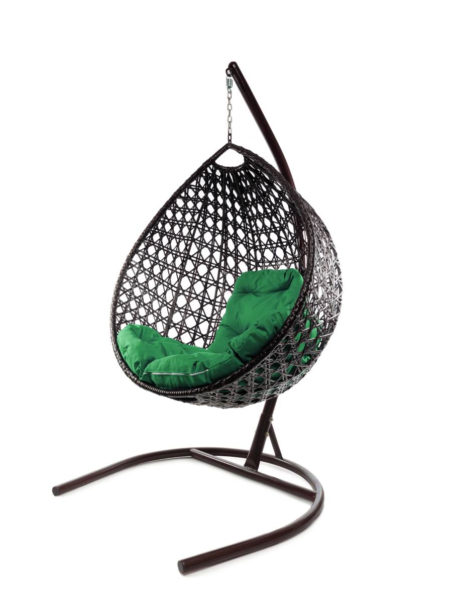 Подвесное кресло КАПЛЯ ЛЮКС с ротангом коричневое, зелёная подушка - купить в интернет-магазине Diopt.ru