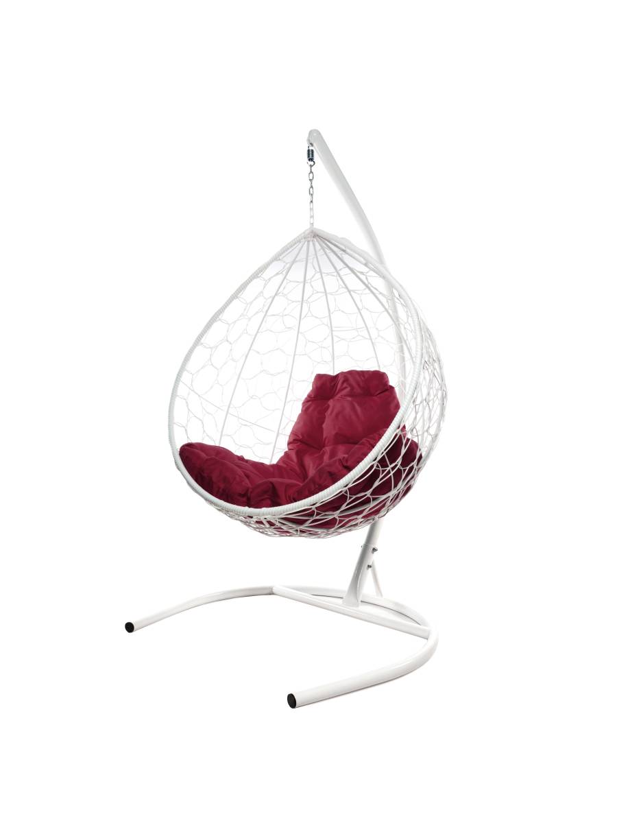 Подвесное кресло КАПЛЯ с ротангом белое, бордовая подушка - купить в интернет-магазине Diopt.ru