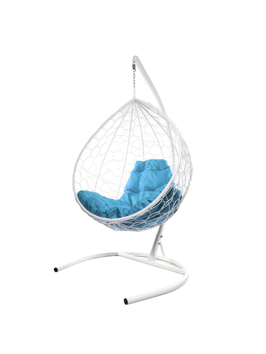 Подвесное кресло КАПЛЯ с ротангом белое, голубая подушка - купить в интернет-магазине Diopt.ru