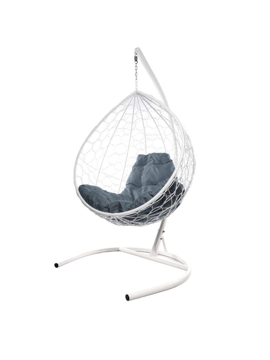 Подвесное кресло КАПЛЯ с ротангом белое, серая подушка - купить в интернет-магазине Diopt.ru