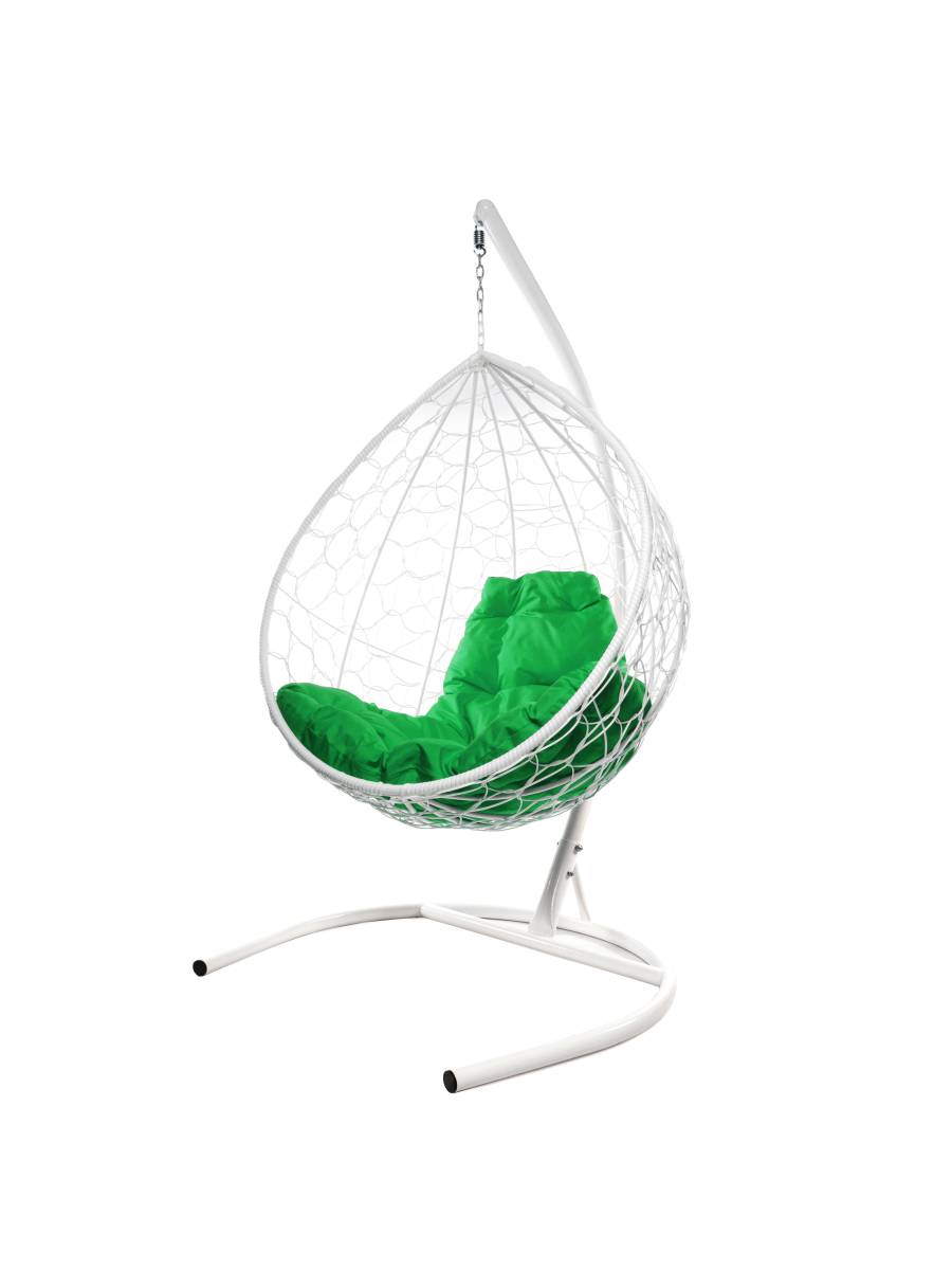 Подвесное кресло КАПЛЯ с ротангом белое, зелёная подушка - купить в интернет-магазине Diopt.ru