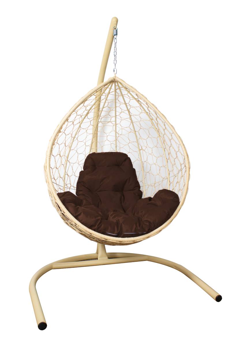 Подвесное кресло КАПЛЯ с ротангом бежевое, коричневая подушка - купить в интернет-магазине Diopt.ru